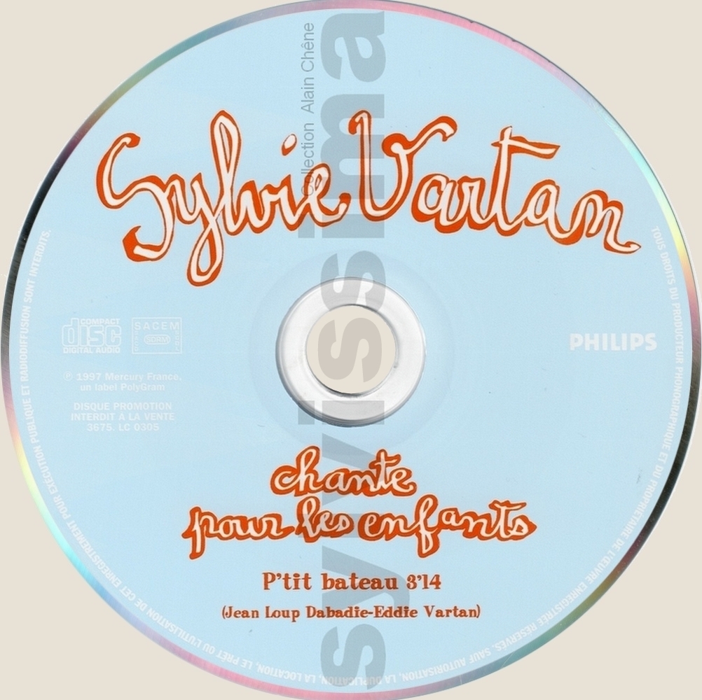 CatégoriePhonogram P'tit bateau 3675 France Ⓟ 1997 CDS Promo Légende couleurs : Chanson originale écrite pour Sylvie Vartan → Droits d'auteur : (Compositeur-s / Parolier-s) ____________ 1- P'tit bateau (E.Vartan/J.L.Dabadie) Recto Label Verso ▼ ▼ ▼ ▼ Variante recto: lettres bleues ▼ Recto Verso ▼ ▼