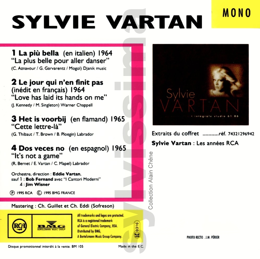 Version en italien, français ou flamand d'une chanson originale écrite pour Sylvie Vartan → Droits d'auteur : (Compositeur-s / Parolier-s)